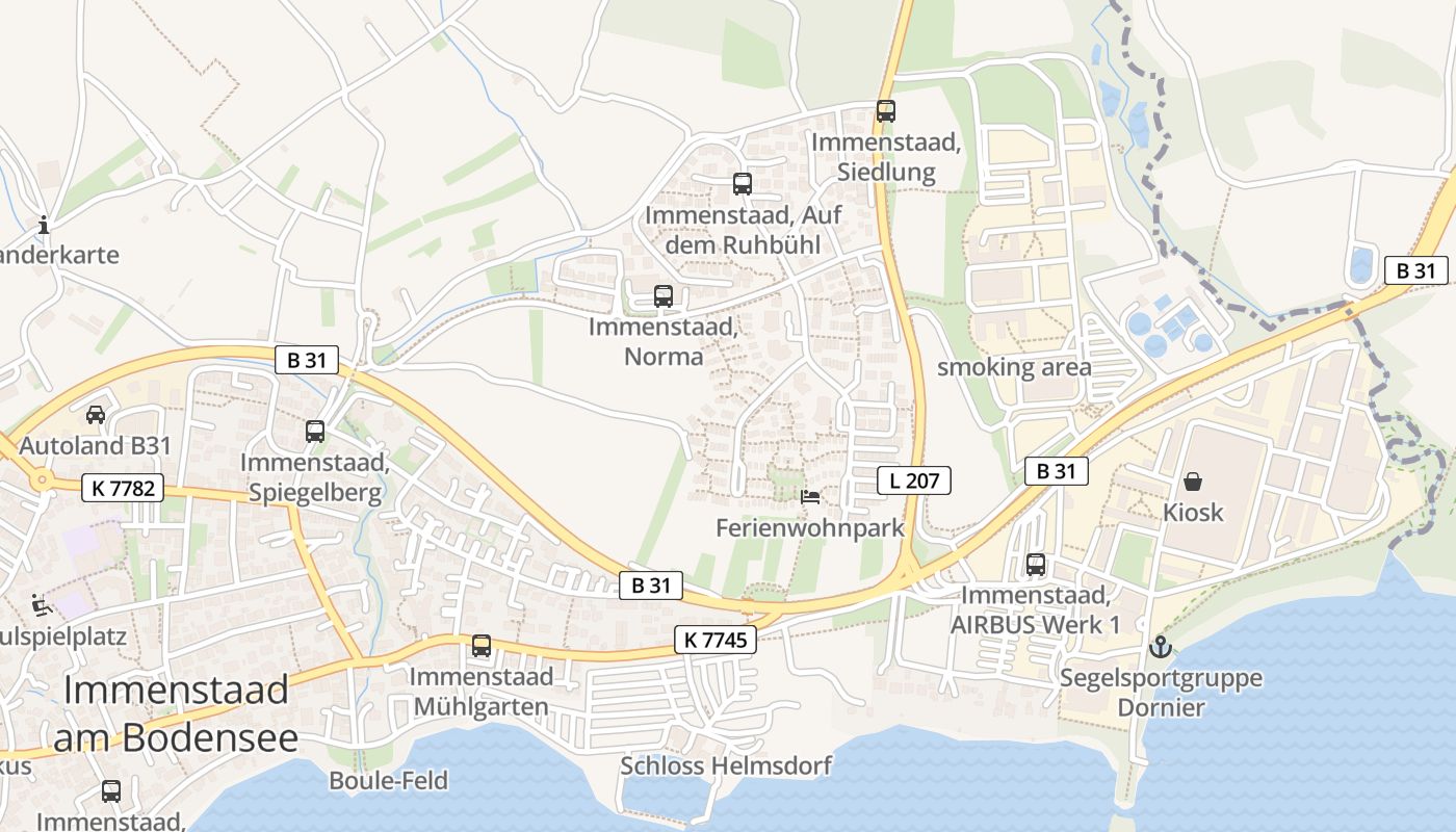 Der Hohberg Immenstaad ist in 25 Minuten zu Fuß und das Stadtzentrum von Immenstaad am Bodensee ist in 15 Minuten zu Fuß erriechbar. Etwa 7 Kilometer von der Villa entfernt besuchen Sie auf jeden Fall die Schlosskirche Friedrichshafen. Die nächste Bushaltestelle Ferienpark Wendeplatte befindet sich ungefähr 150 Meter von hier entfernt.