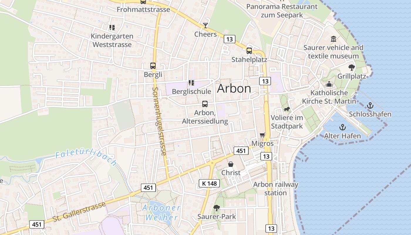 Das Apartment Zimmer Am Bodensee Arbon ist nur 18 Minuten Fußweg vom MoMö - Schweizer Mosterei- und Brennereimuseum entfernt gelegen.